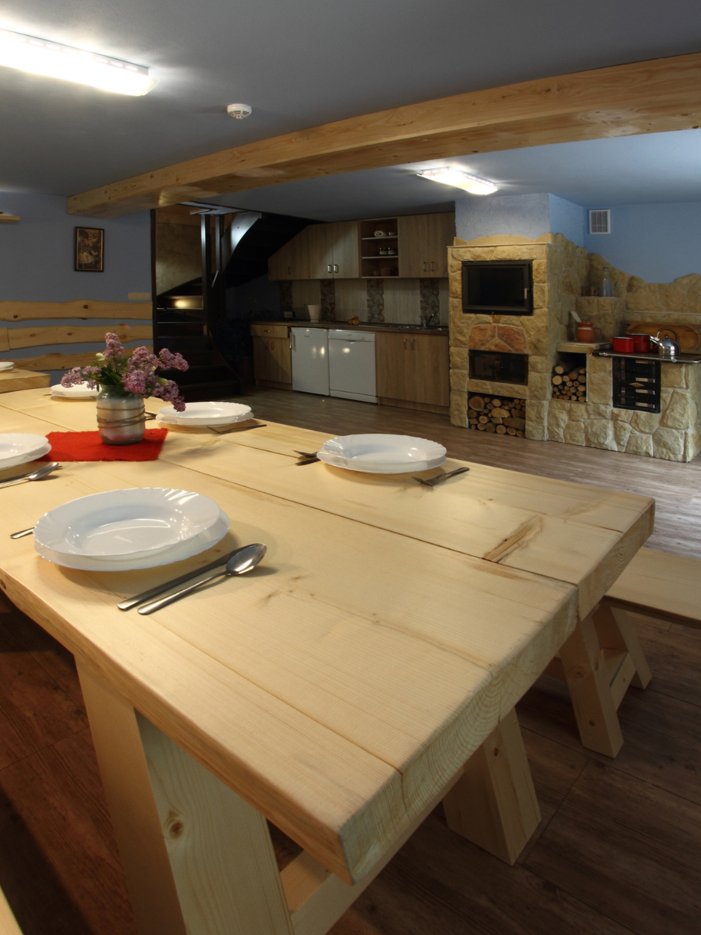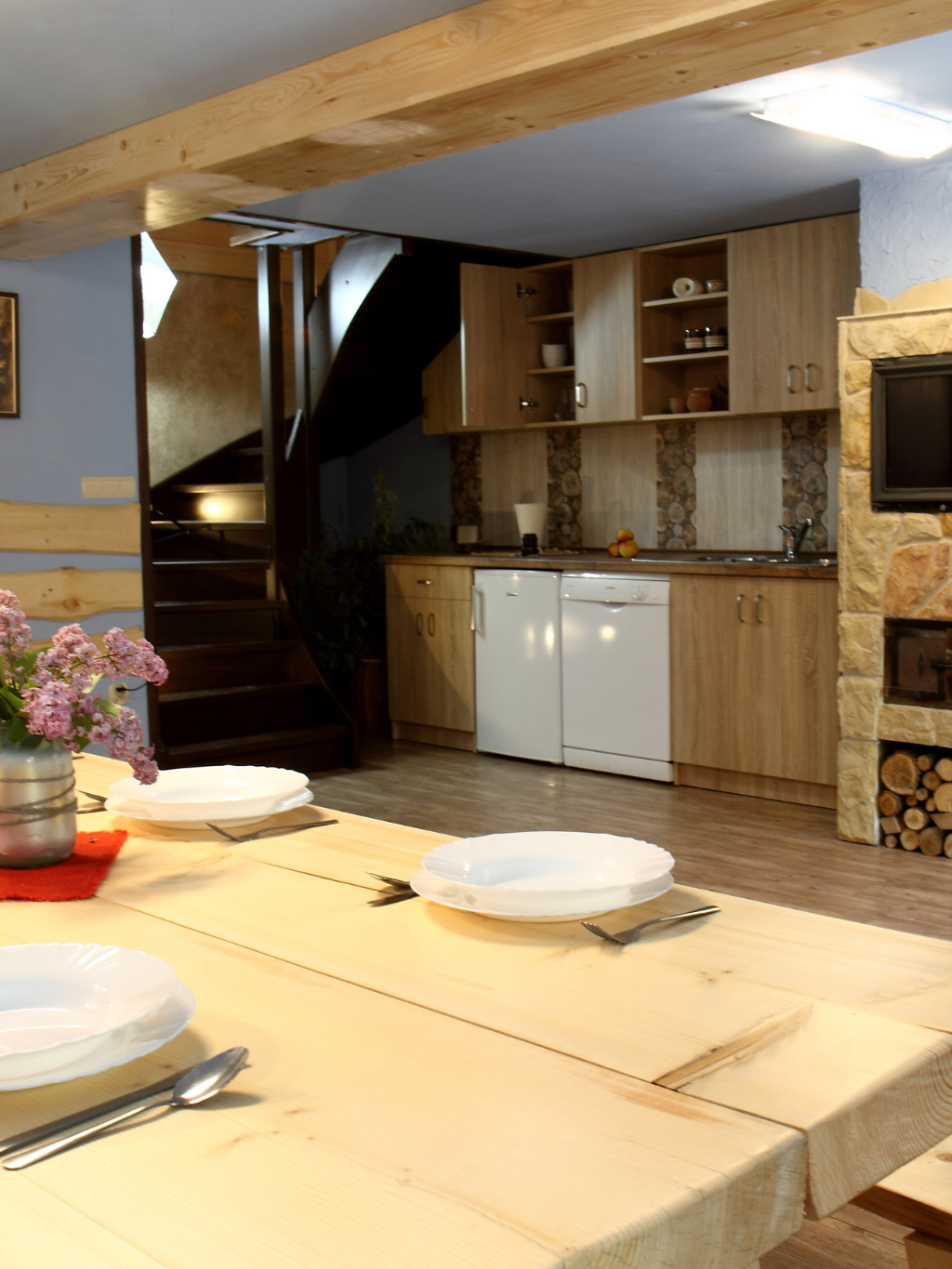Każdy Apartament posiada w pełni wyposażony aneks kuchenny m,in pełna zastawa, kuchnia indukcyjna, mikrofalowa komplet wyposażenia. Każdy z gości ma również dostęp do pieca na pizze, pieca kaflowego, piekarnika, zmywarki oraz pralki.